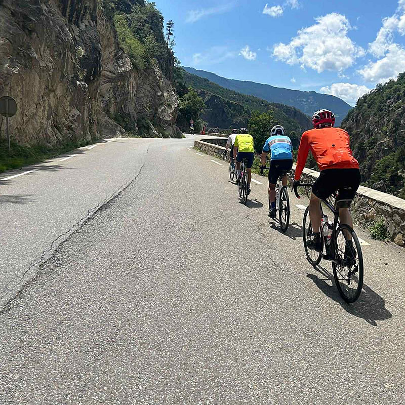 The Alpine Chain Gang is all about providing a relaxed and informal atmosphere where you can enjoy cycling in this part of the Alps at your own level whilst experiencing the magnificent scenery and challenging terrain. Our trips are designed to include all levels of riders from racing cyclists through to enthusiastic sportif cyclists. It’s not a race and our trips are designed in such a way everyone is included.